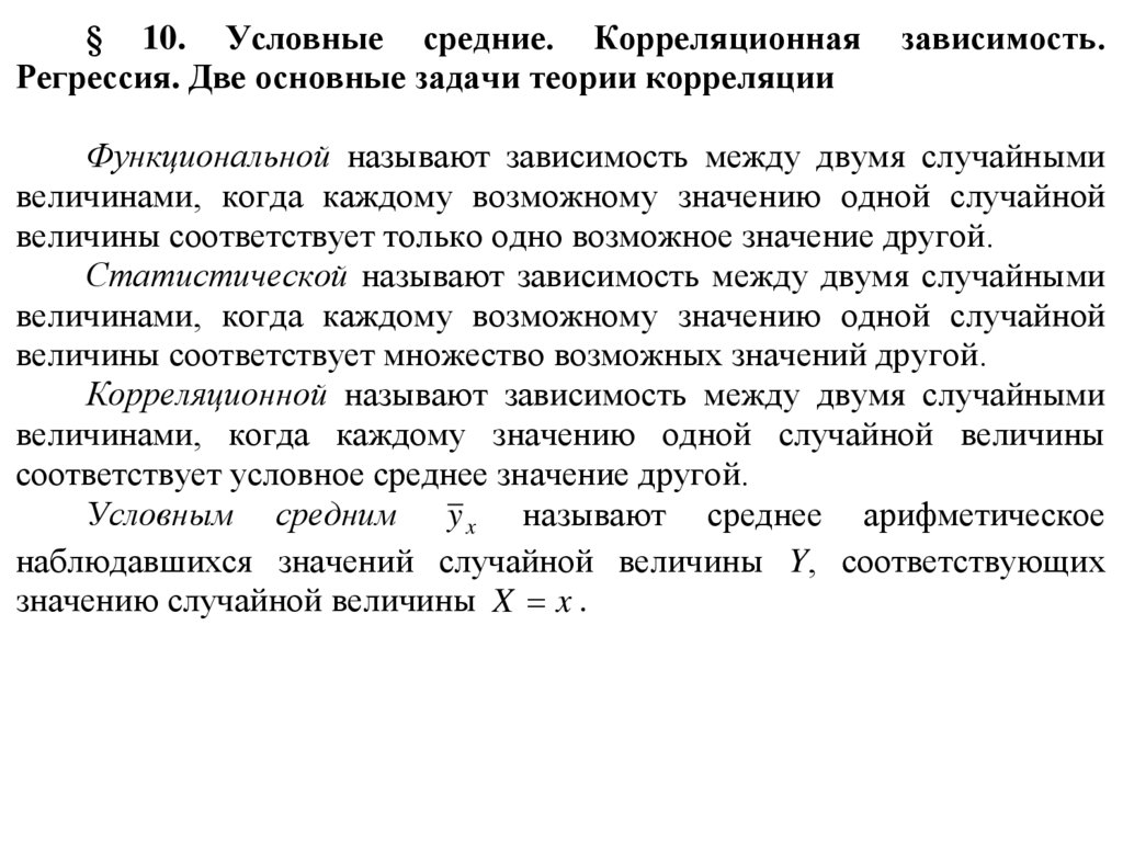 § 10. Условные средние. КорреляционнаяРегрессия. Две основные задачи теории корреляции