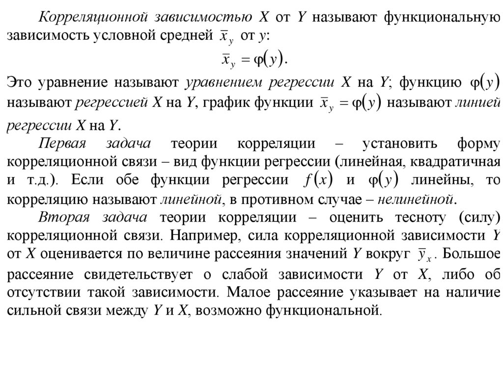 Корреляционной зависимостью X от Y называют функциональнуюзависимость условной средней x y от y: