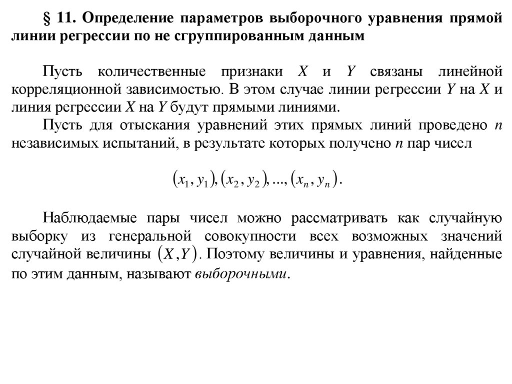 § 11. Определение параметров выборочного уравнения прямойлинии регрессии по не сгруппированным данным