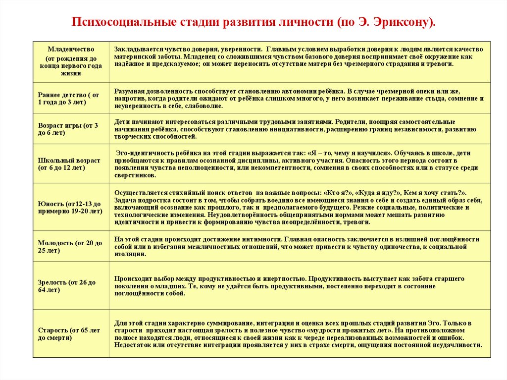 Психосоциальные стадии развития личности (по Э. Эриксону).Младенчество