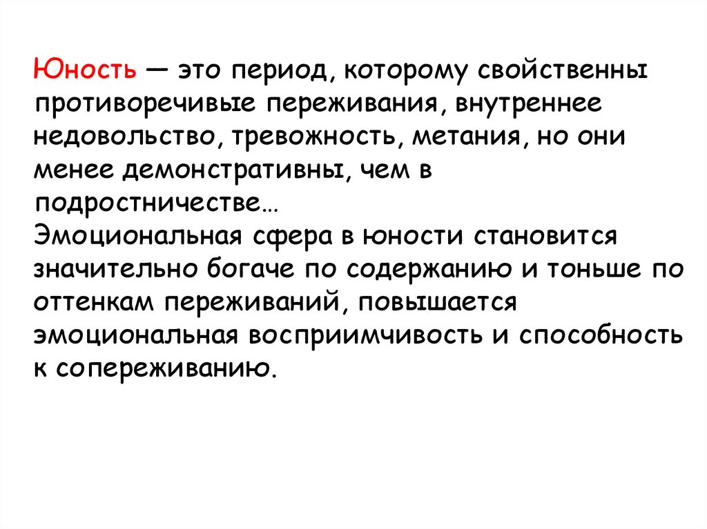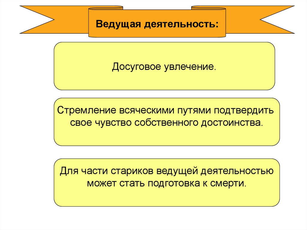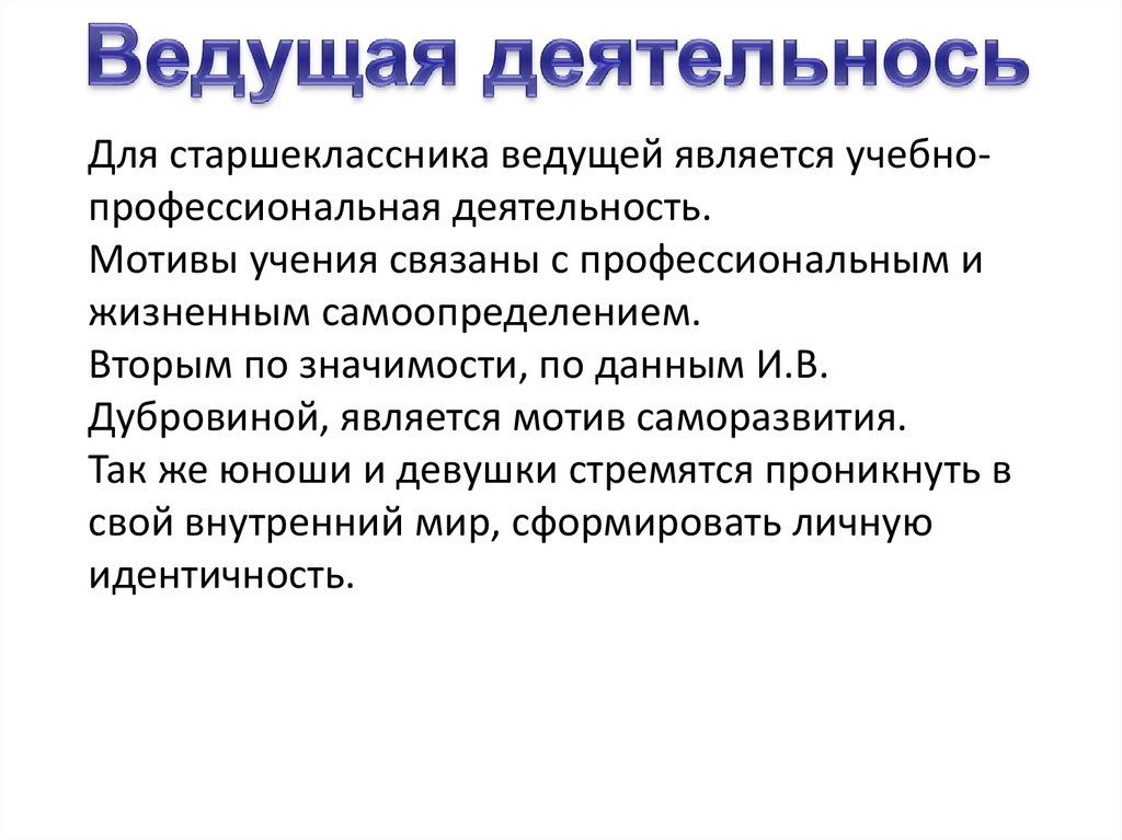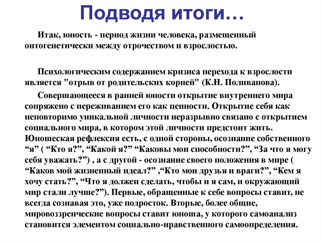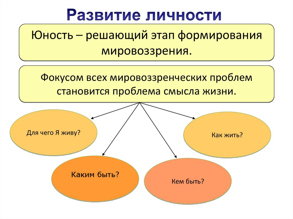 Осуществляется стихийный поиск ответов на важные вопросы: «Кто я?», «Куда я иду?», Кем я хочу стать?».