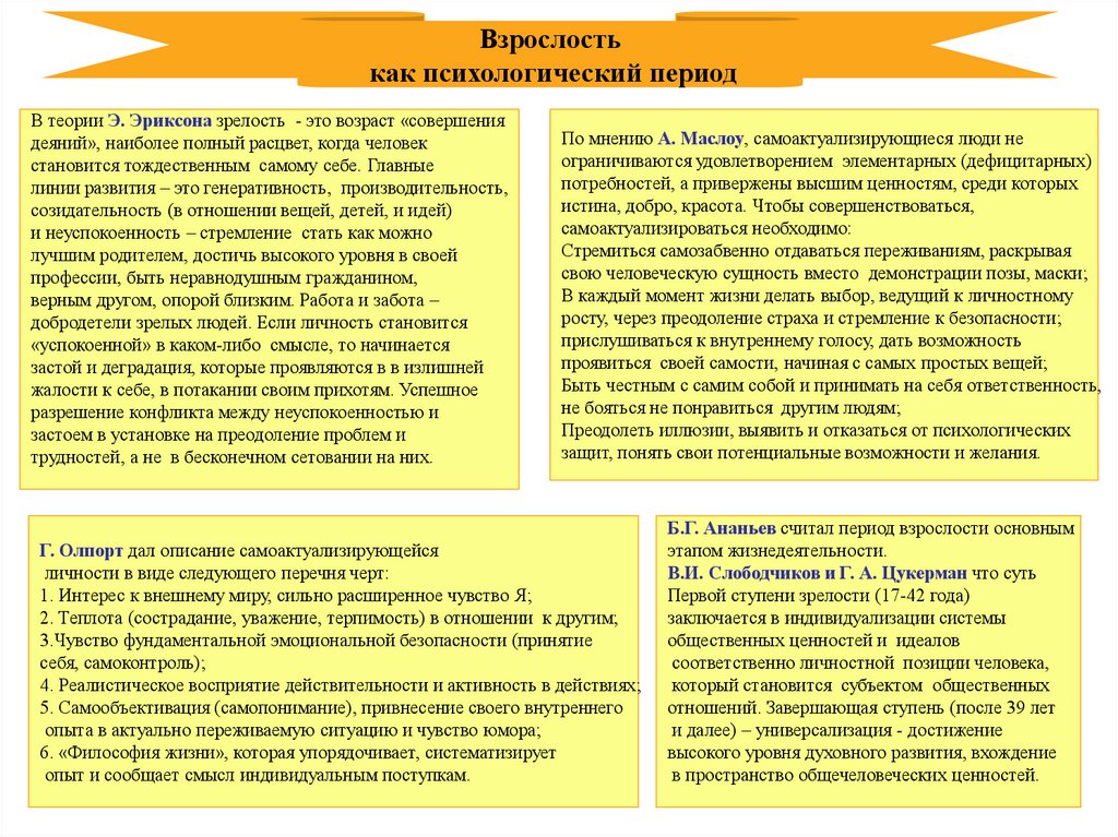 Для этой стадии характерно суммирование, интеграция и оценка всех прошлых стадий развития Эго. Только в