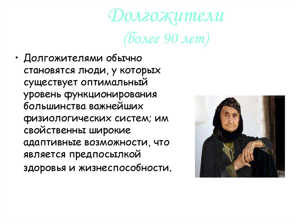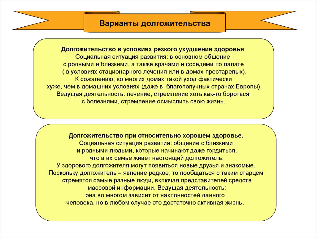 Варианты долгожительстваДолгожительство в условиях резкого ухудшения здоровья.
