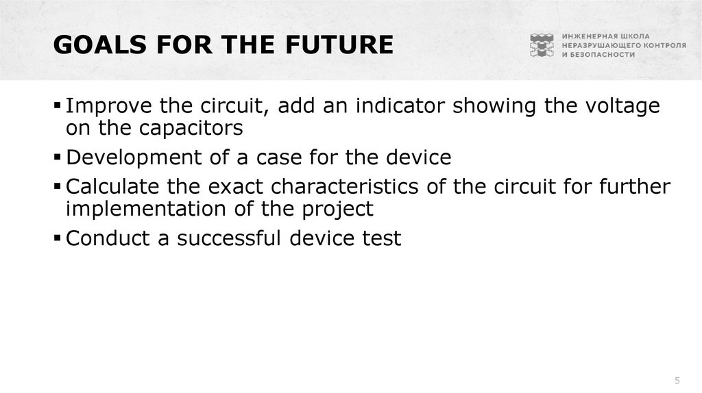 GOALS FOR THE FUTUREImprove the circuit, add an indicator showing the voltage