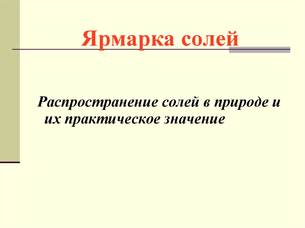 Ярмарка солей. Распространение солей в природе и их практическое значение