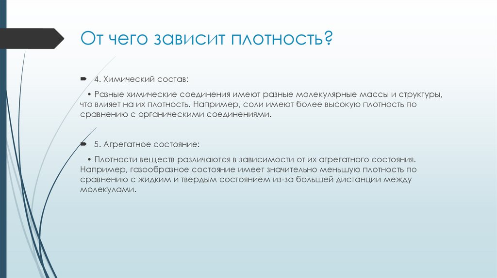 что влияет на их плотность. Например, соли имеют более высокую плотность по