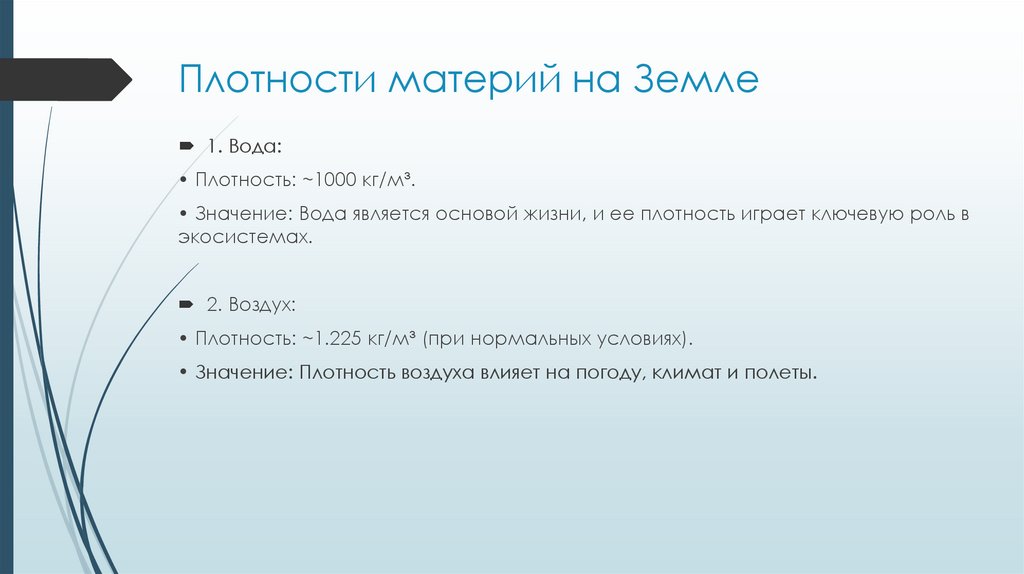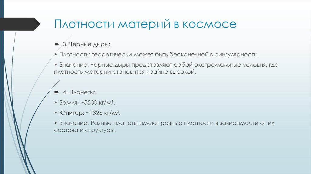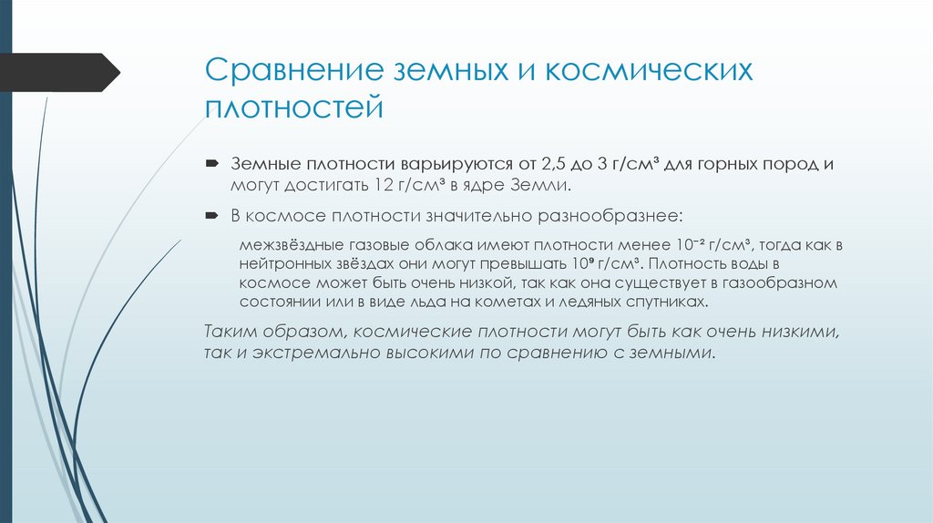 • Значение: Разные планеты имеют разные плотности в зависимости от их