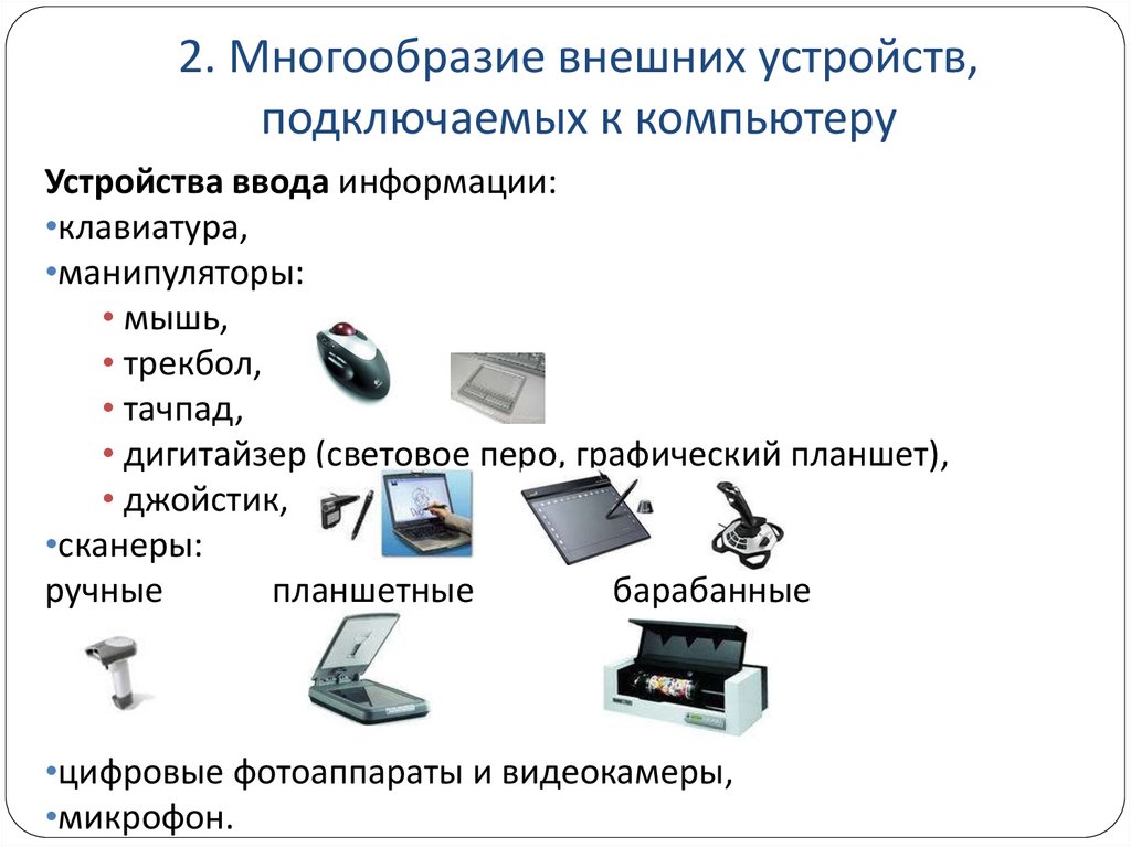 26. 2. Многообразие внешних устройств, подключаемых к компьютеру