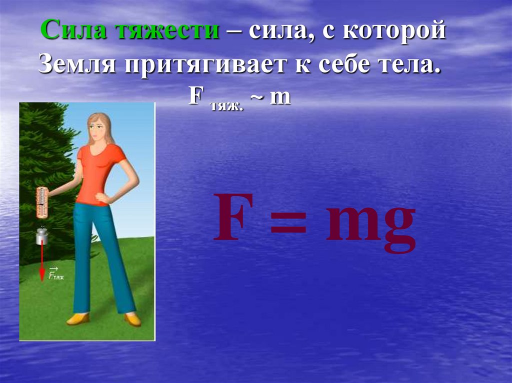 3. Сила тяжести – сила, с которой Земля притягивает к себе тела. F тяж. ~ m