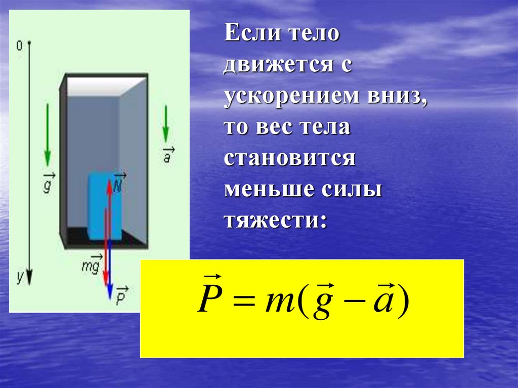 P m( g а )27. Если тело движется с ускорением вниз, то вес тела становится меньше силы тяжести: