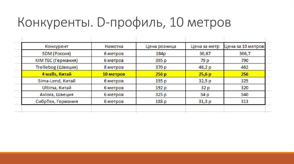Конкуренты. D-профиль, 10 метров7.