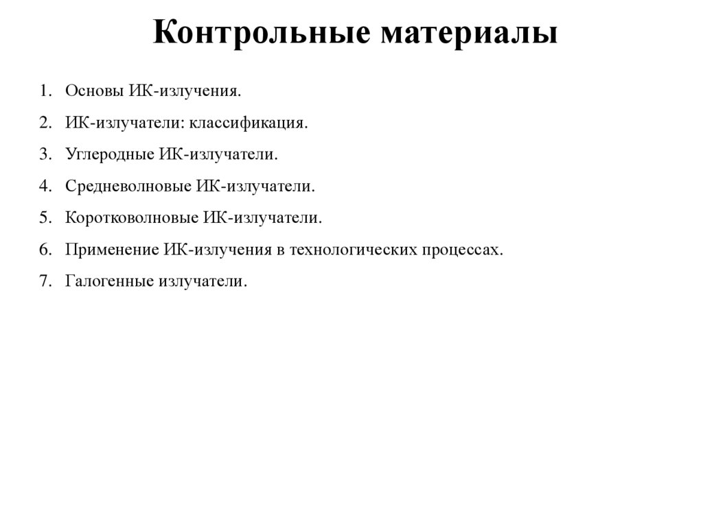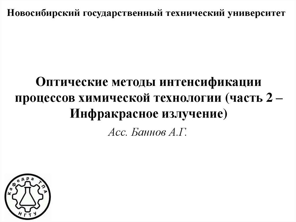 Оптические методы интенсификации процессов химической технологии (часть 2 – инфракрасное излучение)