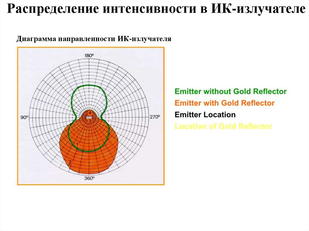Распределение интенсивности в ИК-излучателеДиаграмма направленности ИК-излучателя