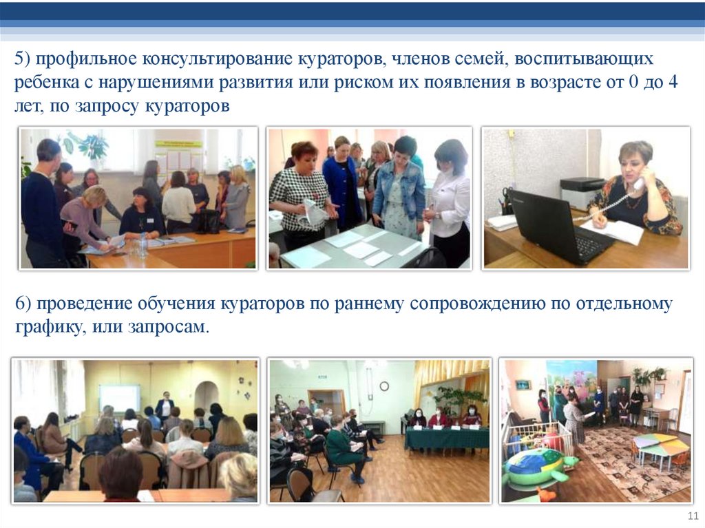 5) профильное консультирование кураторов, членов семей, воспитывающихребенка с нарушениями развития или риском их появления в возрасте от 0 до 4