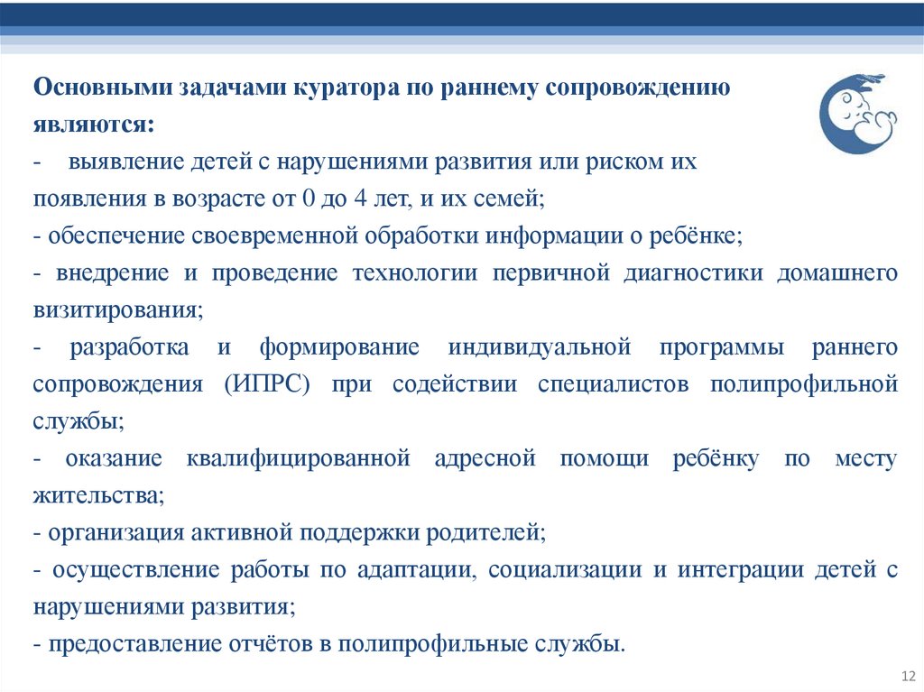 Основными задачами куратора по раннему сопровождениюявляются:
