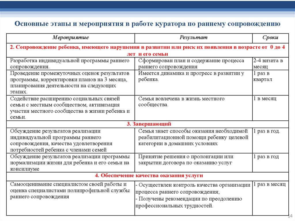 раннего сопровождения;