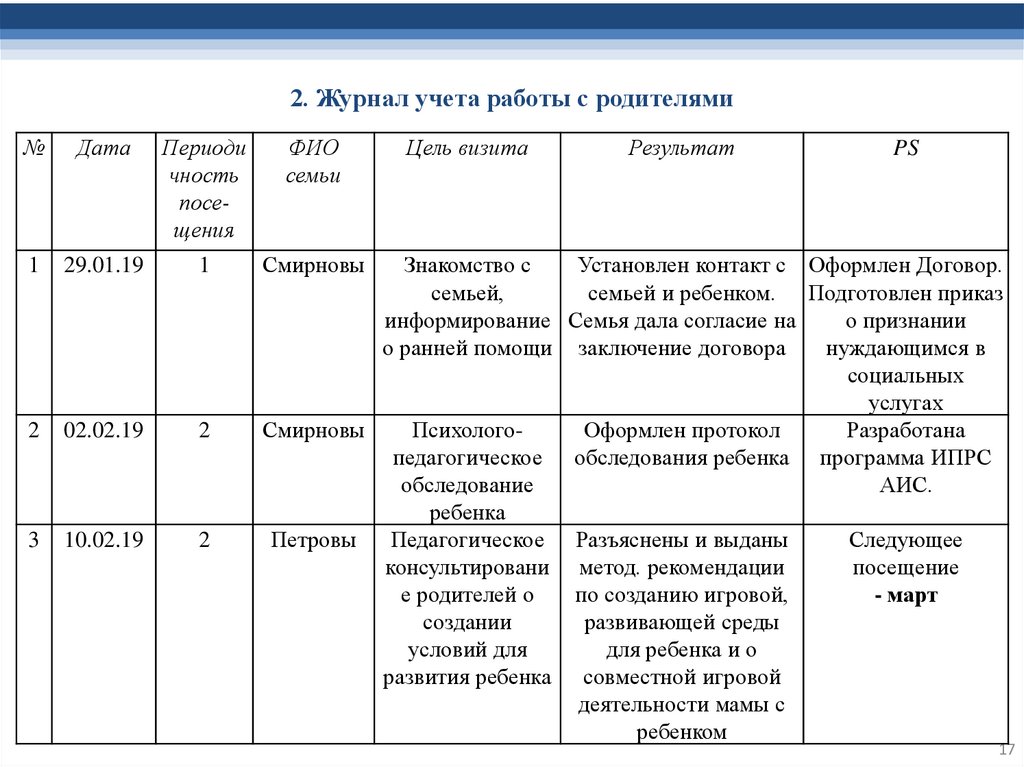 семьей, проведения первичной диагностики