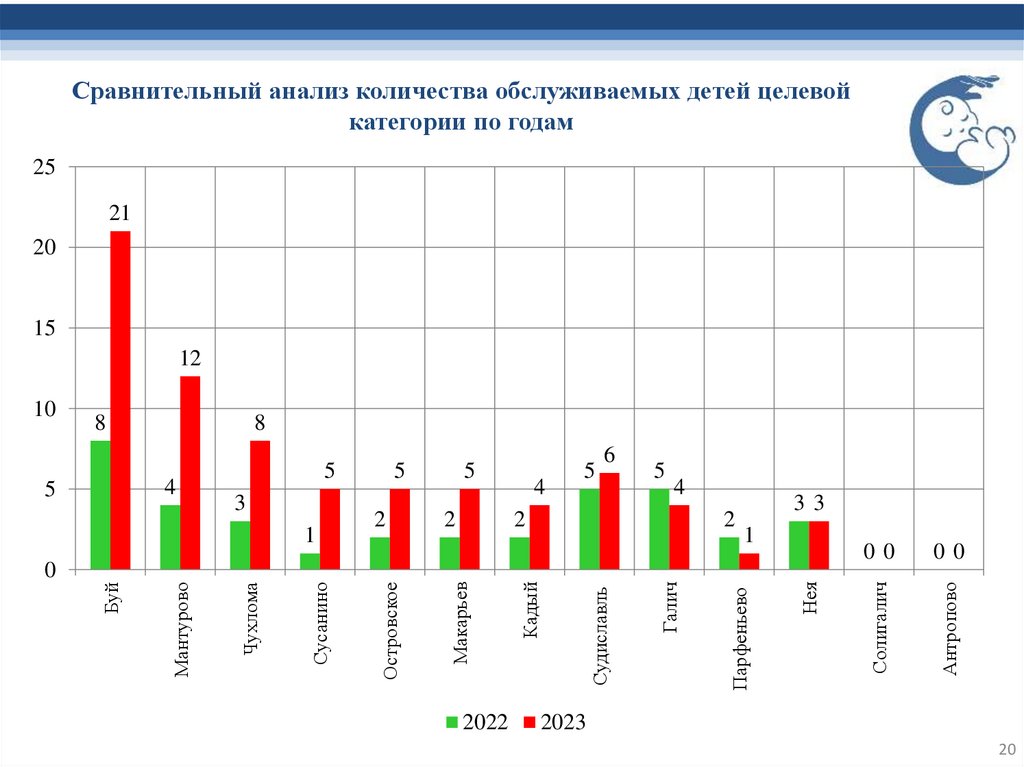 Сравнительный анализ количества обслуживаемых детей целевойкатегории по годам