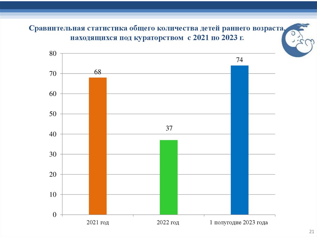 Сравнительная статистика общего количества детей раннего возраста,находящихся под кураторством с 2021 по 2023 г.