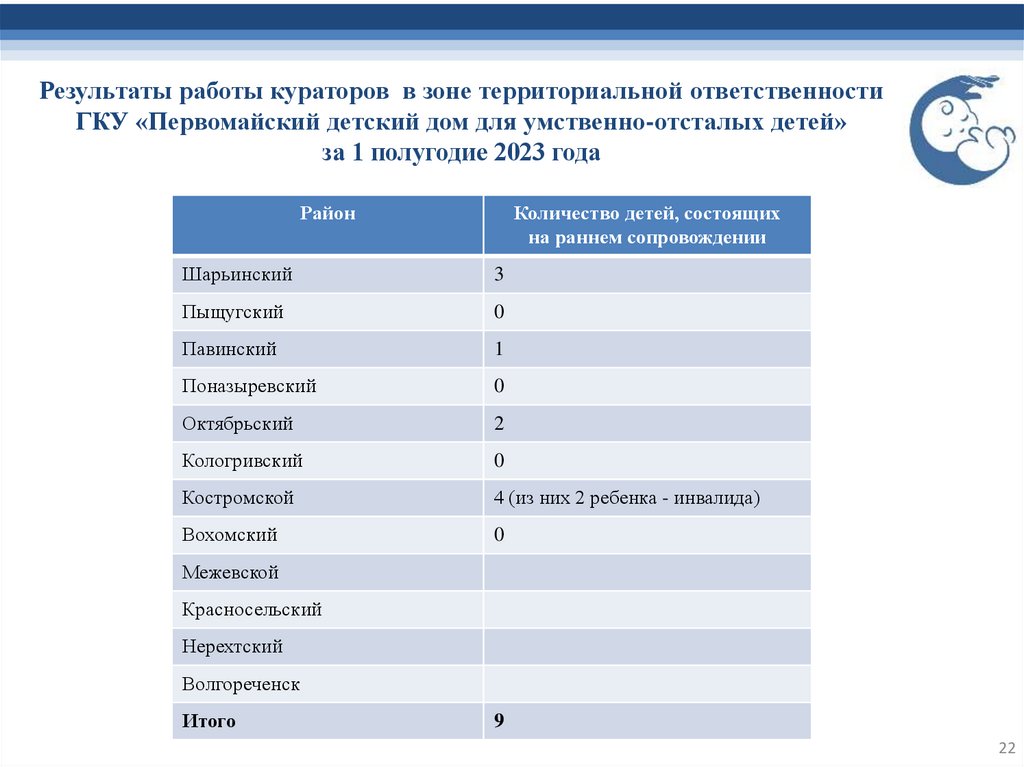 Итоги работы кураторов по раннему сопровождению детей с нарушениями развития или риском их появления в возрасте от 0 до 4 лет