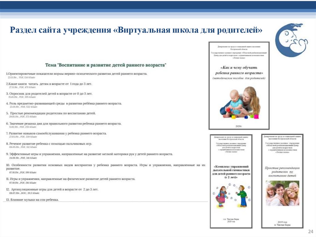 Раздел сайта учреждения «Виртуальная школа для родителей»24