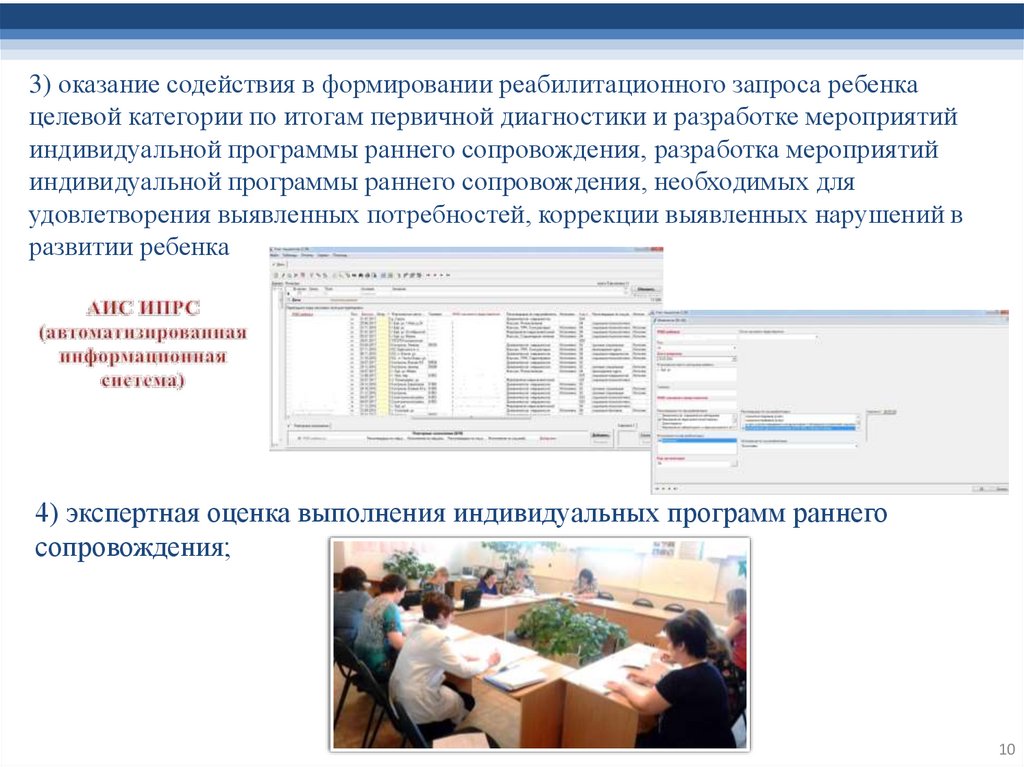 4) экспертная оценка выполнения индивидуальных программ раннего