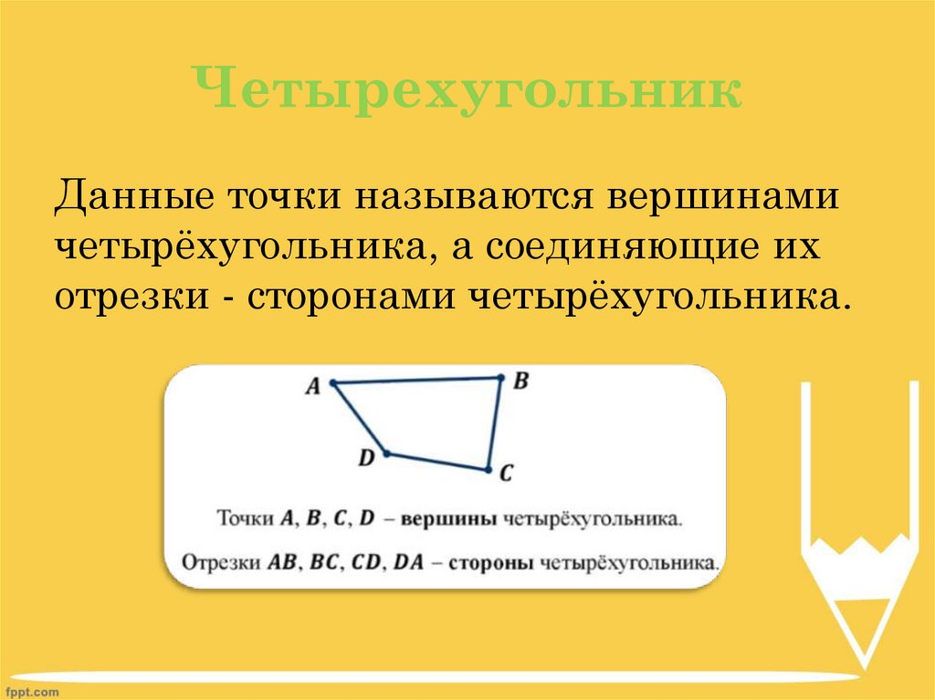 ЧетырехугольникЧетырёхугольник - это фигура, которая
