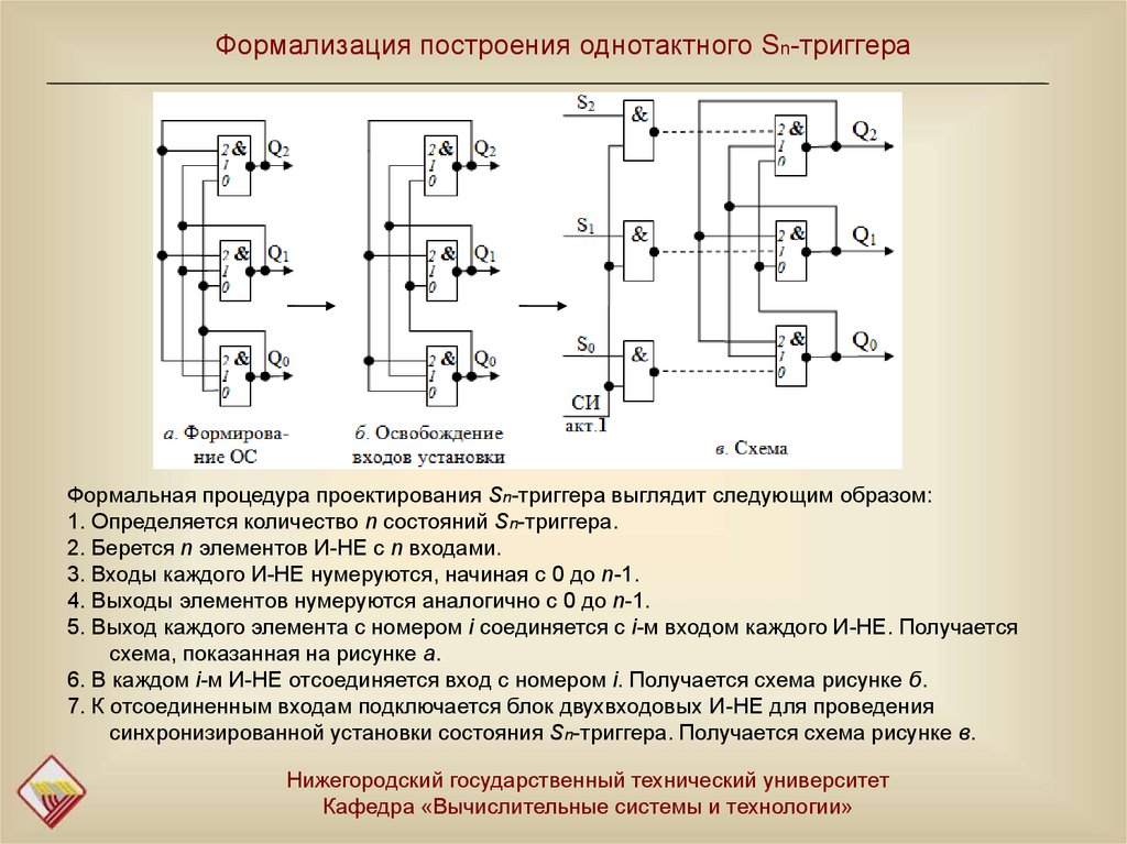 синхронизированной установки состояния Sn-триггера. Получается схема рисунке в.