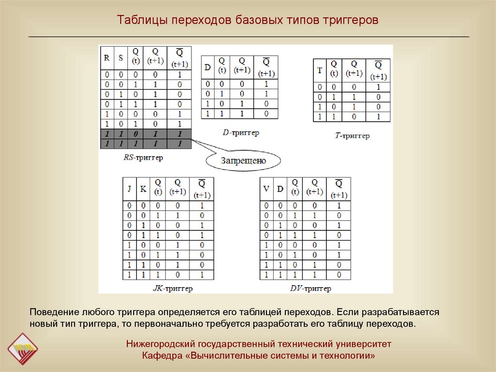Таблицы переходов базовых типов триггеровПоведение любого триггера определяется его таблицей переходов. Если разрабатывается