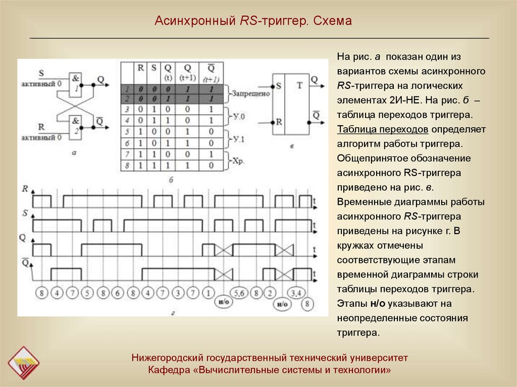Асинхронный RS-триггер. СхемаНа рис. а показан один из