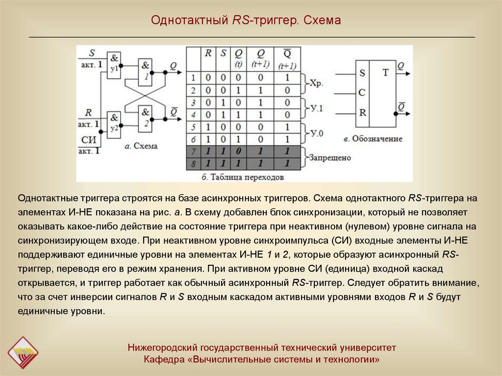 - однотактный синхронный триггер строится на базе асинхронного;