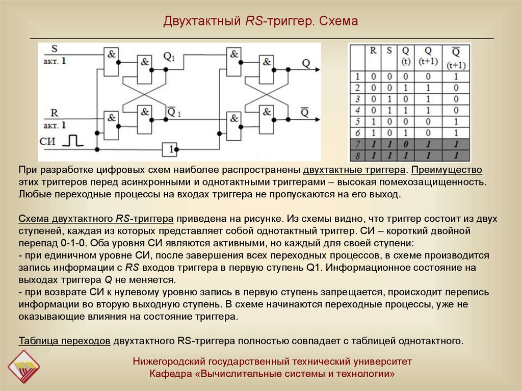 - двухтактный триггер строится на базе двух однотактных.