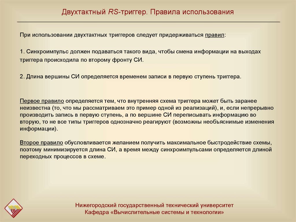 превращаясь при этом в асинхронные. Двухтактные изменяют свое состояние только при