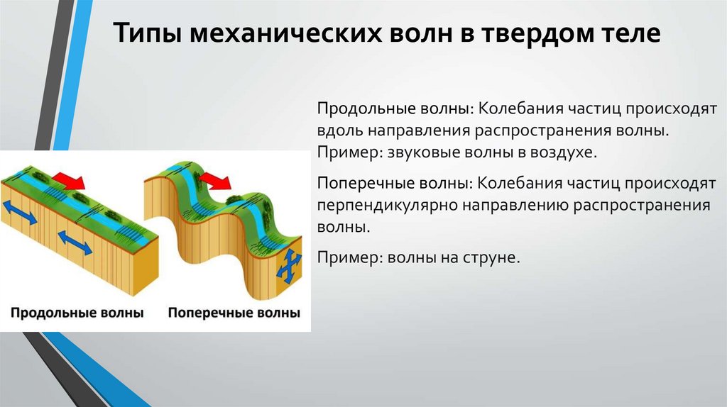 Типы механических волн в твердом телеПродольные волны: Колебания частиц происходят