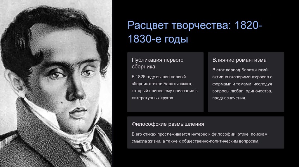 В поздней лирике Баратынский поднимал