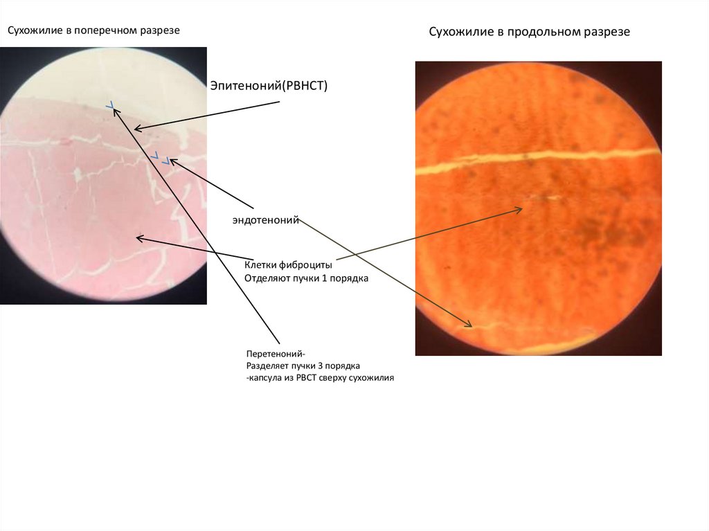 Сухожилие в поперечном разрезеСухожилие в продольном разрезе