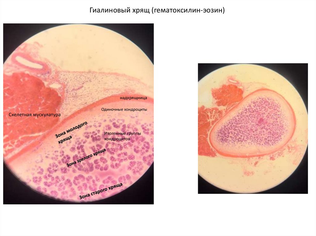 Гиалиновый хрящ (гематоксилин-эозин)надхрящница