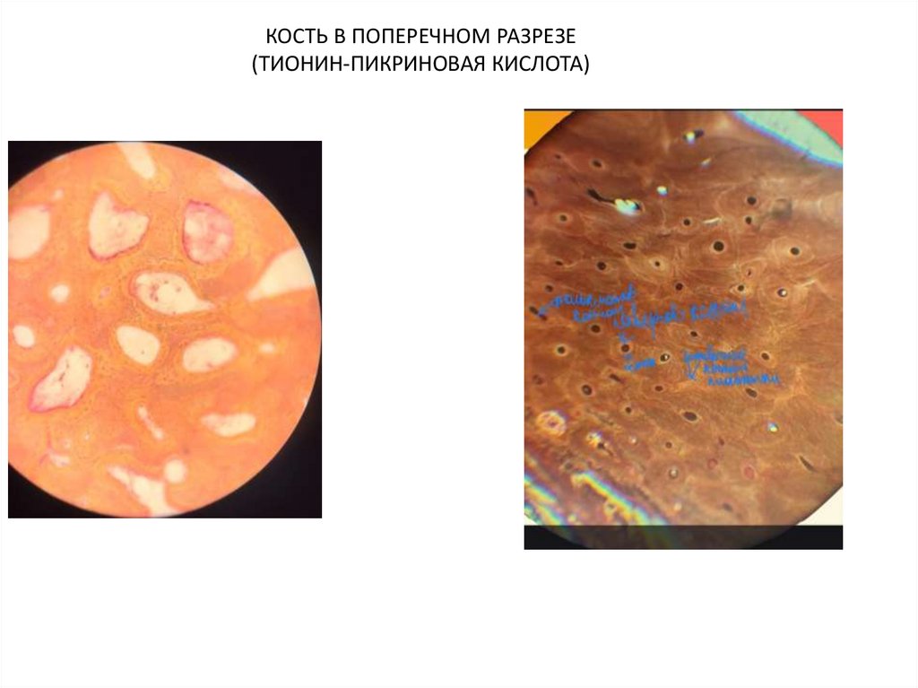 КОСТЬ В ПОПЕРЕЧНОМ РАЗРЕЗЕ(ТИОНИН-ПИКРИНОВАЯ КИСЛОТА)