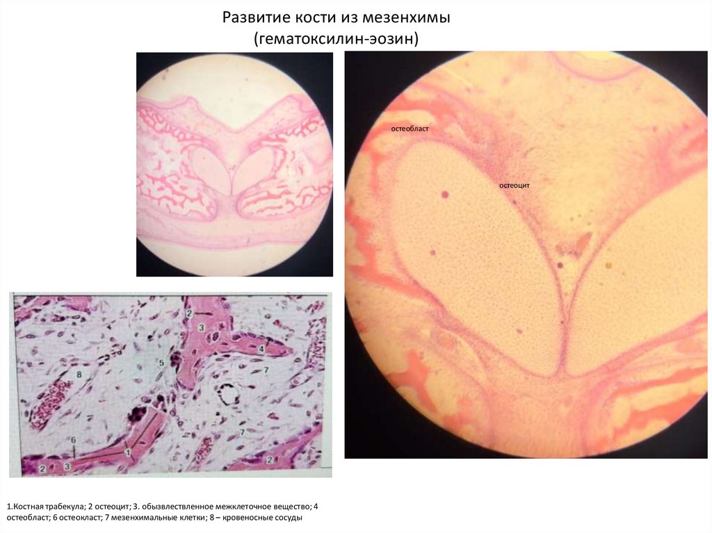 Развитие кости из мезенхимы(гематоксилин-эозин)