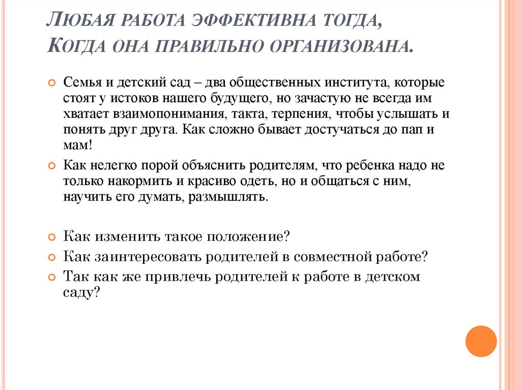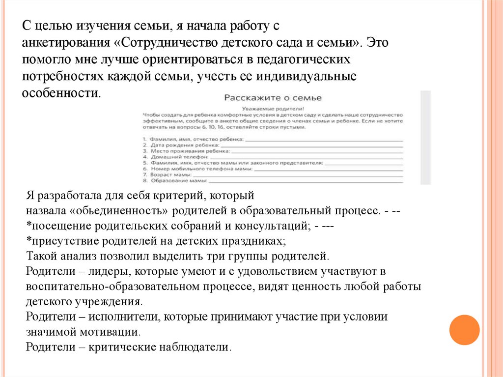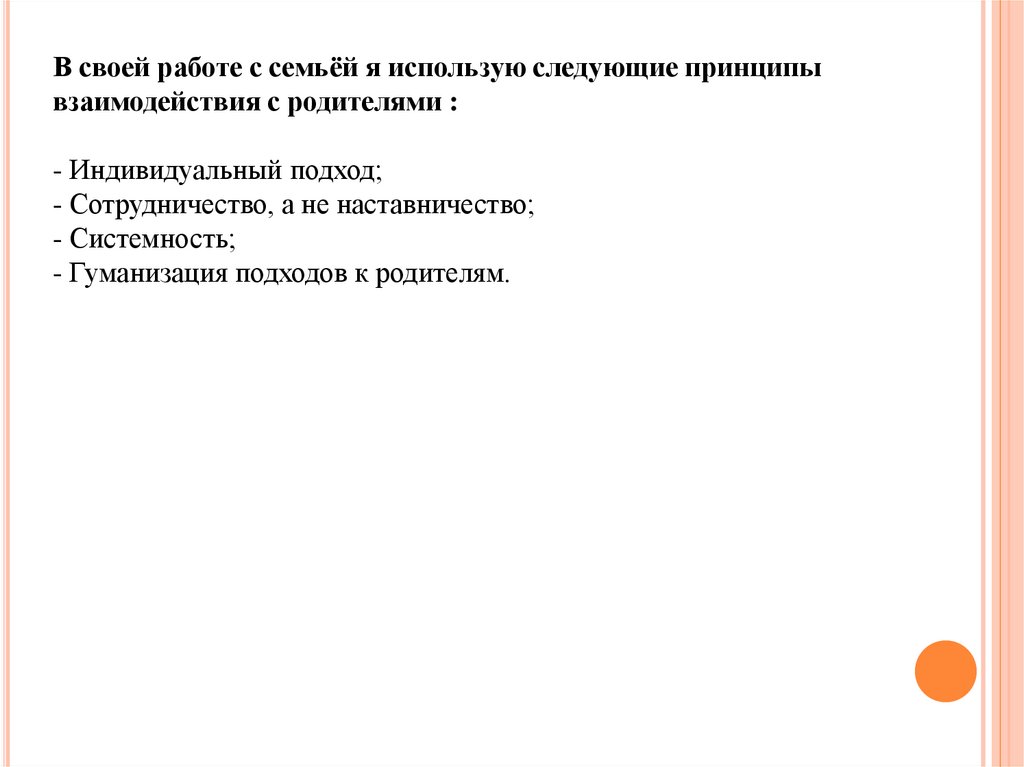 В своей работе с семьёй я использую следующие принципывзаимодействия с родителями :
