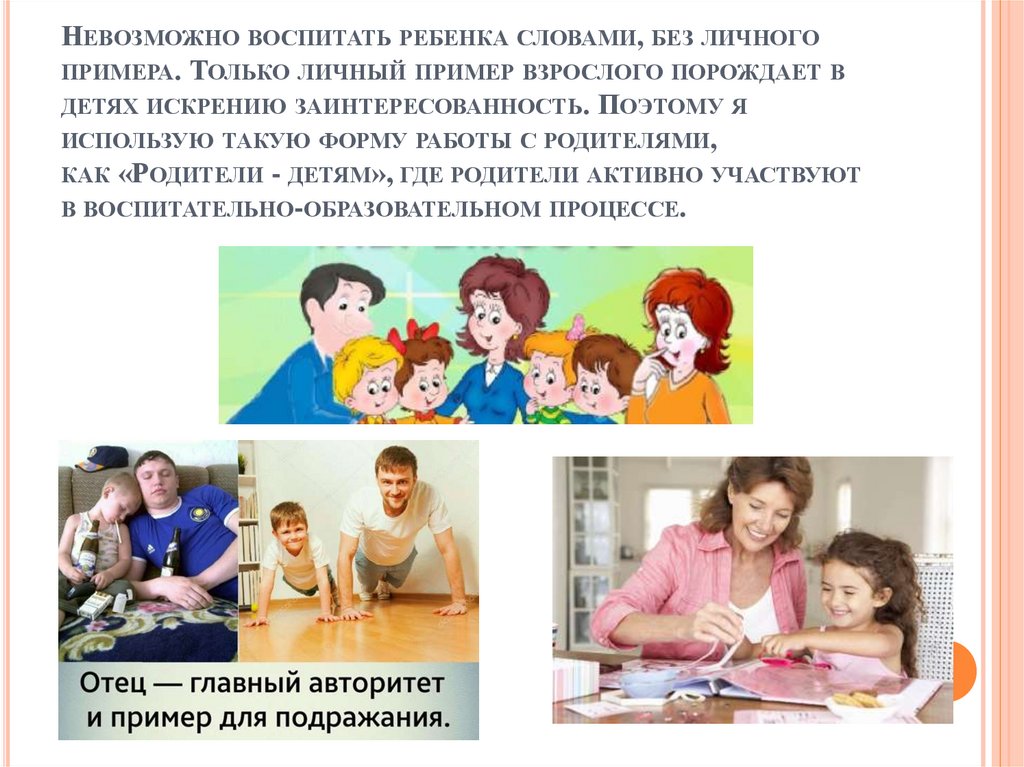 НЕВОЗМОЖНО ВОСПИТАТЬ РЕБЕНКА СЛОВАМИ, БЕЗ ЛИЧНОГОПРИМЕРА. ТОЛЬКО ЛИЧНЫЙ ПРИМЕР ВЗРОСЛОГО ПОРОЖДАЕТ В