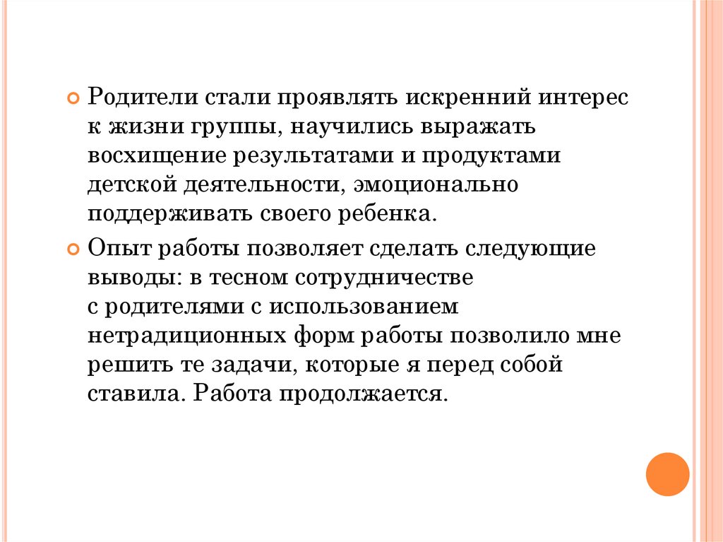 Родители стали проявлять искренний интереск жизни группы, научились выражать