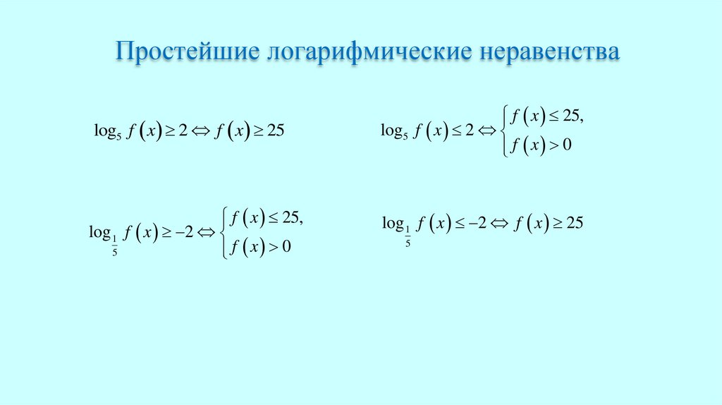Простейшие логарифмические неравенстваlog5 f x 2 f x 25