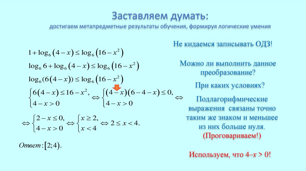 1 log 6 4 х log 6 16 х 2