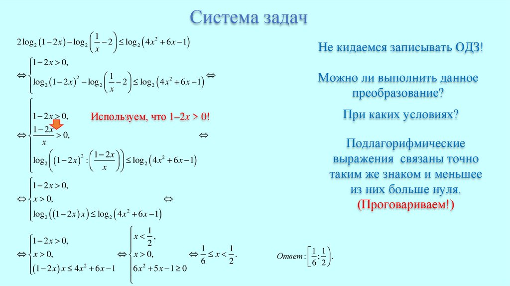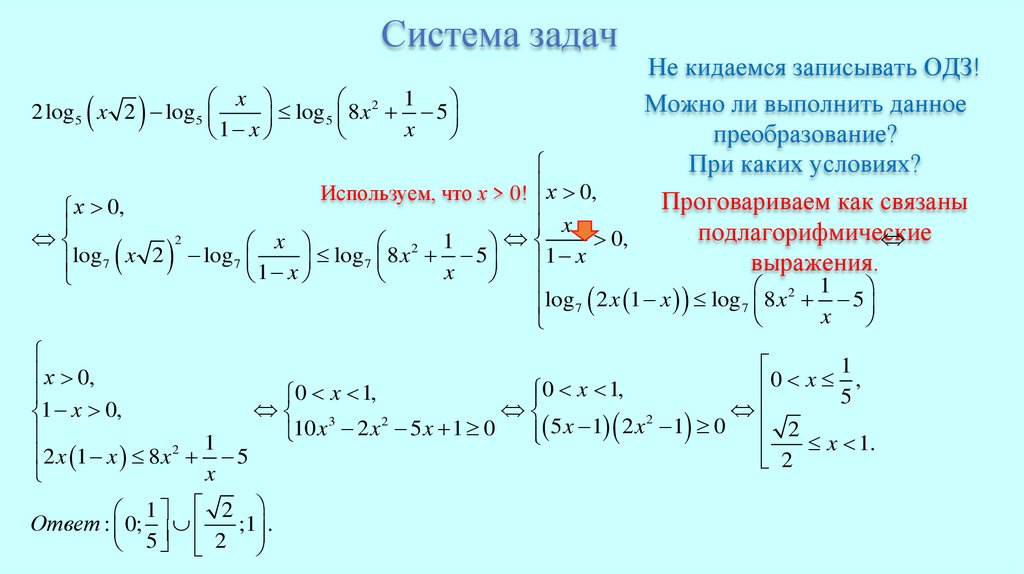Система задачНе кидаемся записывать ОДЗ!