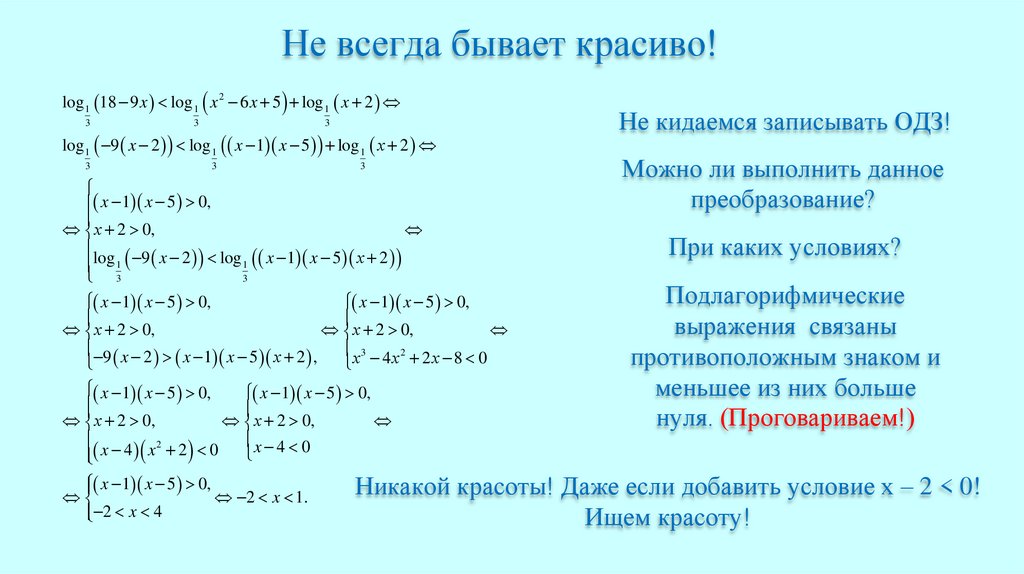 Не всегда бывает красиво!log 1 18 9 x log 1 x 2 6 x 5 log 1 x 2