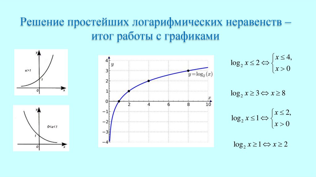 Решение простейших логарифмических неравенств –итог работы с графиками