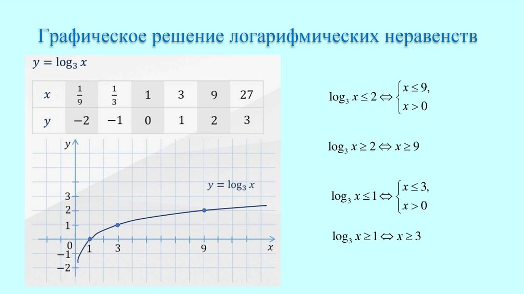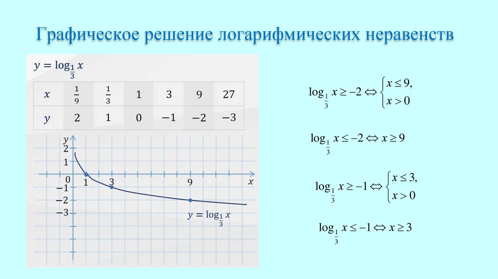Графическое решение логарифмических неравенствх 9,