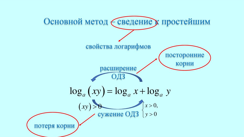 Основной метод – сведение к простейшимсвойства логарифмов