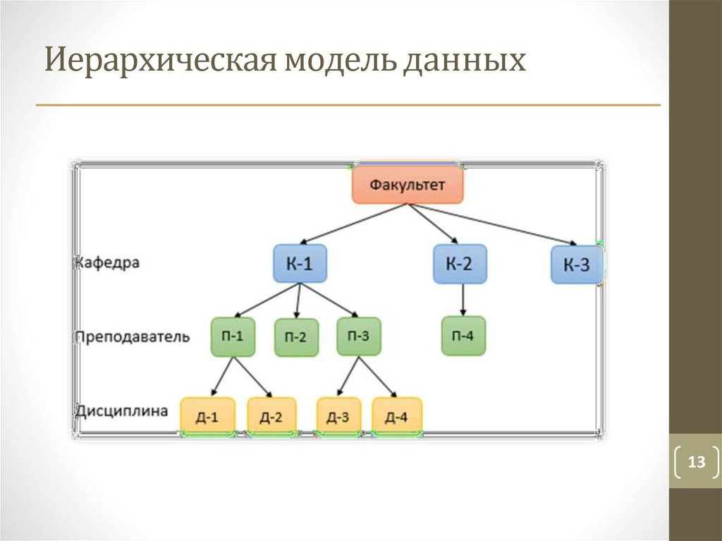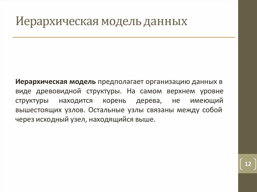 Иерархическая модель данныхИерархическая модель предполагает организацию данных в